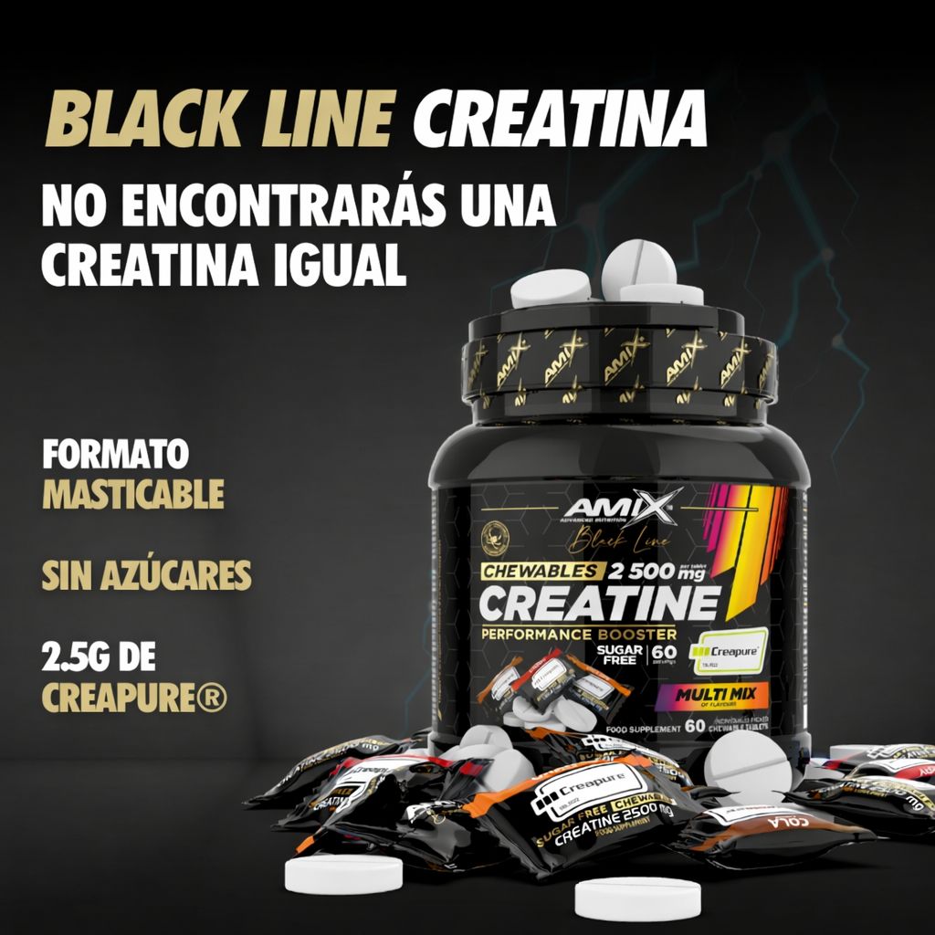 Amix™ Creatine 2500 mg Chewables es un suplemento alimenticio en forma de comprimidos masticables que contiene monohidrato de creatina Creapure®. Diseñado para apoyar la suplementación de creatina en la dieta de deportistas y personas activas, su formato masticable permite un consumo fácil en cualquier momento del día.